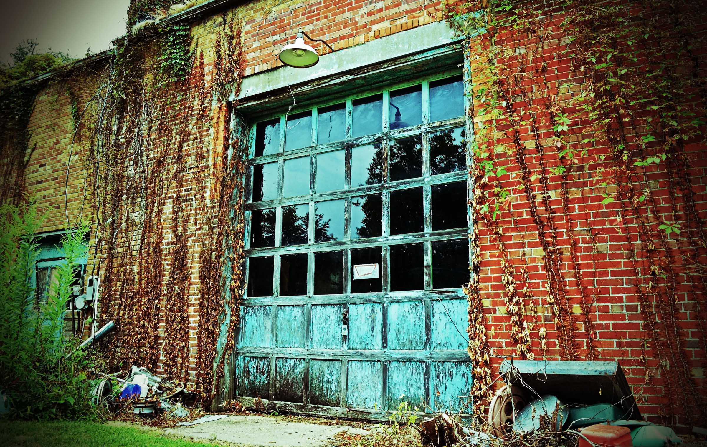 1. great title πŸ™‚ There’s something about distressed buildings.. in the imperfections there’s an odd beauty. I’ve often dreamed of turning an industrial building like this one into a unique home. Wouldn’t it be great to open six garage doors in your dining room? I’d have to invent a way for a screen to pop up as the doors open though – don’t like bugs 😐 I love the distressed wood on the door and the brick, fantastic image, Sharon.