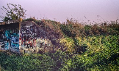 graffiti and grass, camp ellis at twilight