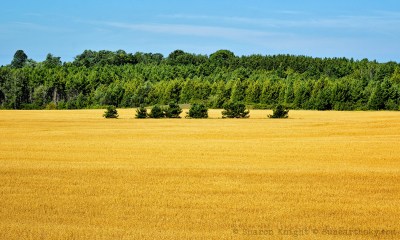 wheat field and pines