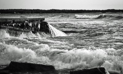 waves over pier
