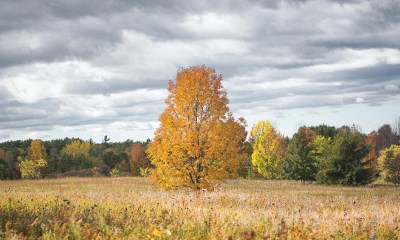 birch and pine with cloudbank
